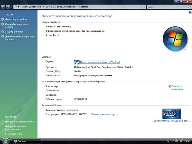 - Windows Vista Ultimate SP2 x64 Russian